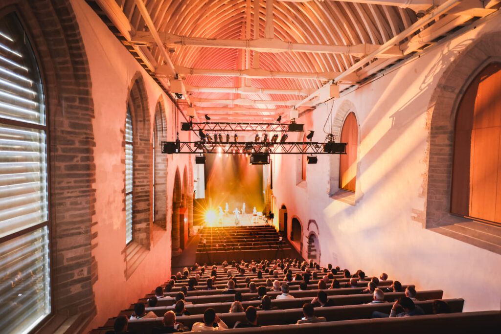 Sous les voûtes patrimoniales, il est possible de transformer l’espace au gré des envies et des besoins grâce à une scène rétractable et des fauteuils amovibles. De quoi mettre en œuvre les plus belles scénographies, quel que soit votre format d’événement !