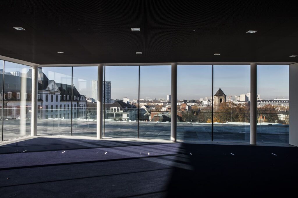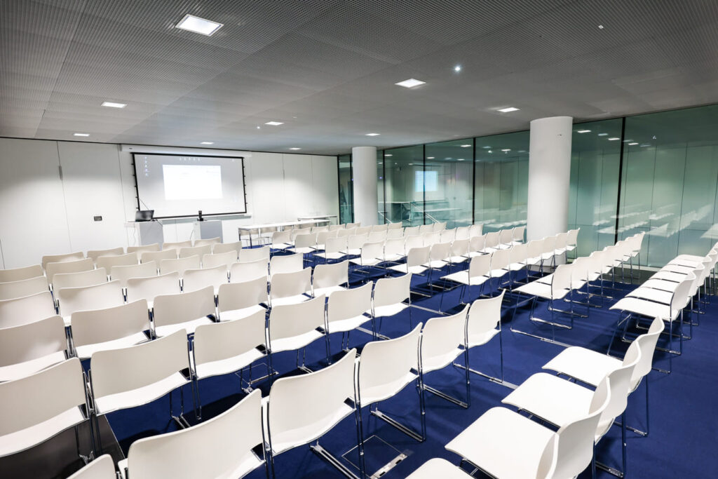 L’ensemble des salles de commission propose une capacité de 30 à 300 personnes selon les espaces avec 4 salles entre 200 et 400, 6 salles entre 100 et 150, 10 salles entre 60 et 100, 5 salles entre 40 et 60, la plupart bénéficiant de la lumière naturelle. Leur répartition sur l’ensemble du bâtiment assure une bonne gestion des flux et permet une grande fluidité de la circulation des participants durant l’événement.