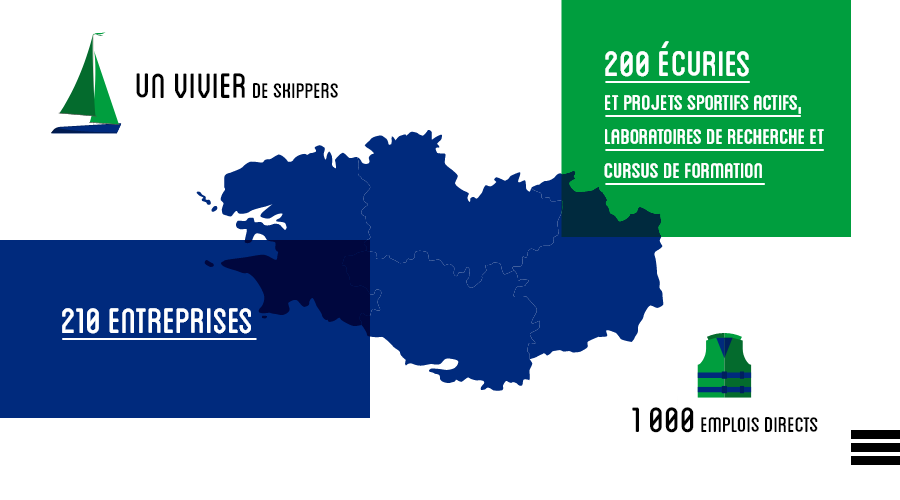 Dans le domaine sportif, la Bretagne était déjà connue pour ses skippers de renom comme Éric Tabarly ou Michel Desjoyeaux. La Bretagne est la terre d’origine de nombreux navigateurs. Pour preuve, le Vendée Globe 2020 comptait 11 skippers bretons sur les 33 skippers au départ. Désormais, elle l’est aussi pour son pôle d’excellence Bretagne Sailing Valley, qui s’inscrit dans le programme Eurolarge : un lieu unique au monde qui réunit l’ensemble des acteurs qui composent la chaîne de l’économie de la voile de compétition. Cet écosystème hors norme est composé de 210 entreprises industrielles et de service, de plus de 200 écuries et projets sportifs actifs, de laboratoires de recherche et de cursus de formation. Au total, près de 1 000 emplois directs ont été créés par cette filière.
